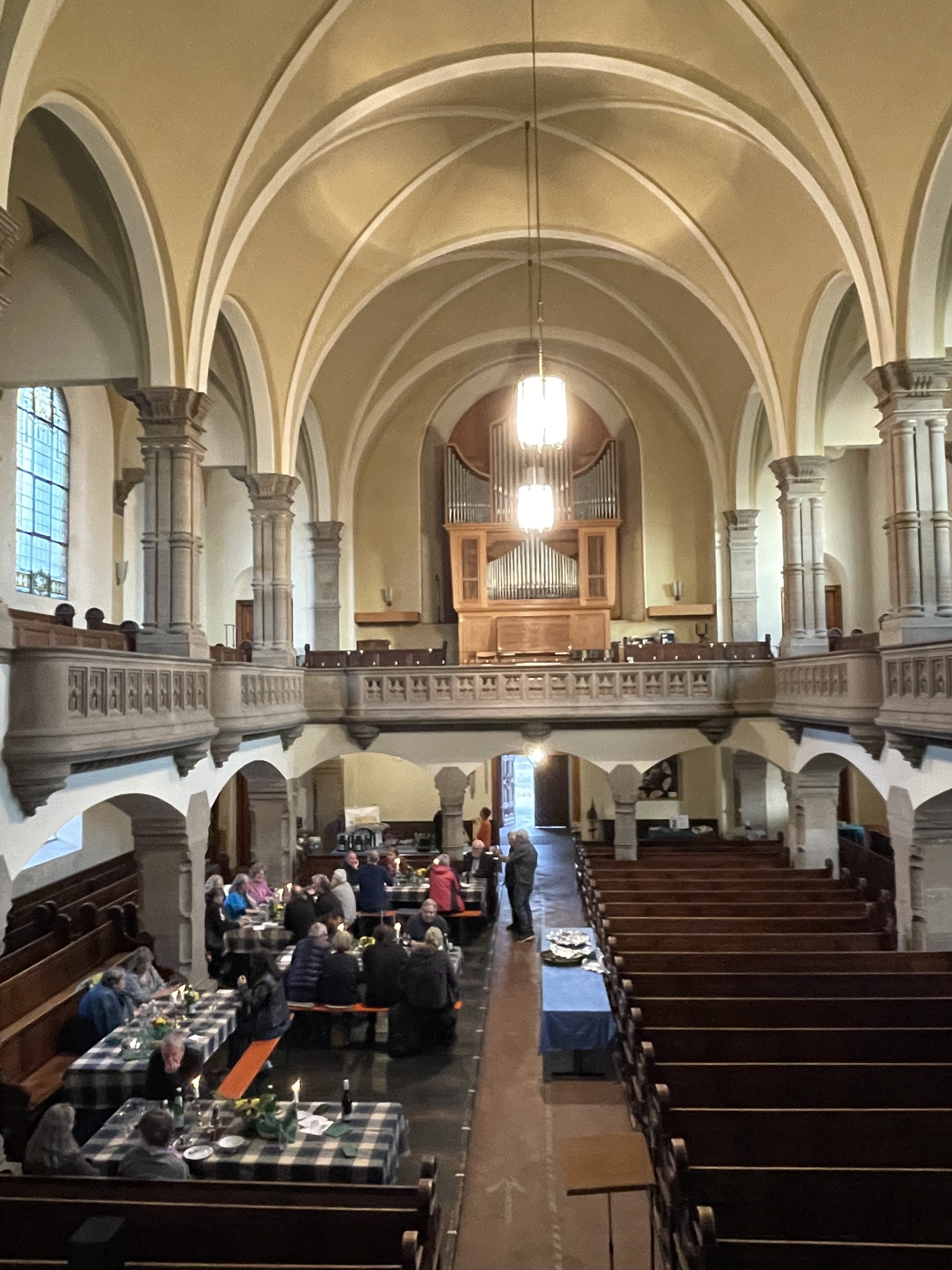 Am Samstag, den 13. Mai 2023 lud der Förderverein zum bereits 7. Mal in die Markuskirche ein, um in dieser besonderen Atmosphäre gemeinsam zu speisen. Dieses Mal gab es leckere spanische Paella, die knapp 40 Gäste in die Markuskirche lockte. Auch der spanische Wein wusste zu überzeugen!